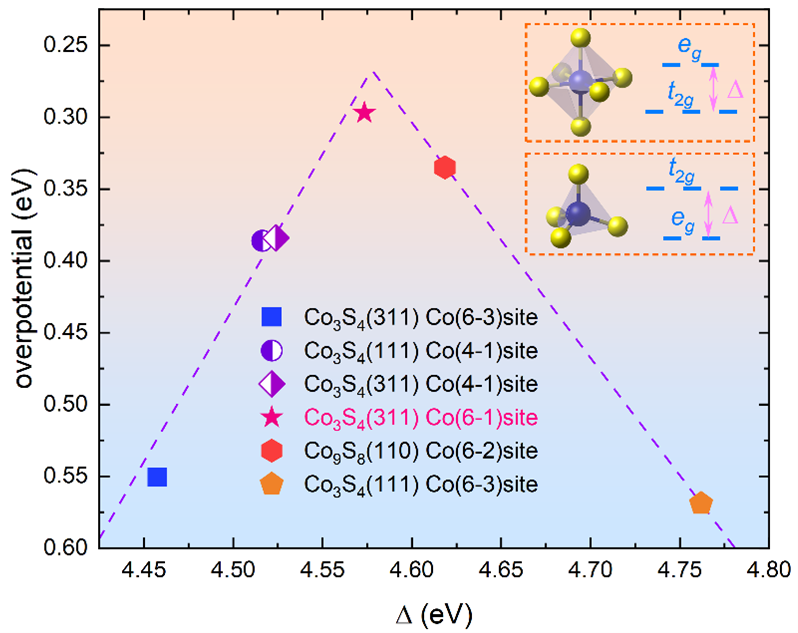 图2. 晶体场劈裂能Δ作为OER的新描述符
