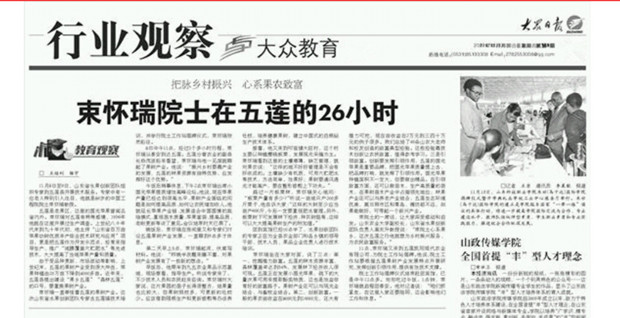 院士工作站揭牌仪式结束赶回宾馆,已是中午12点多。匆匆吃过午饭,1点钟,束怀瑞就启程回泰安。他对记者说:“咱们抓紧走,在这里人家还要陪同,这会影响他们工作和休息。”
