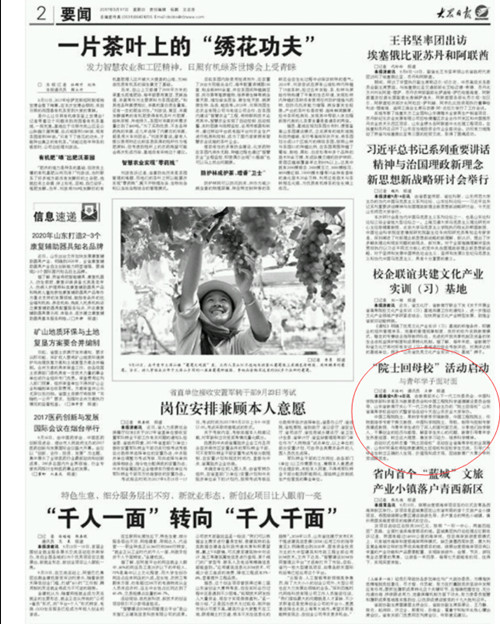 《大众日报》在9月17日二版要闻刊发新闻,文章提到,三位院士解答学生关心问题,教育引导青年学生热爱祖国、树立远大理想、激发学习动力、培养科学精神。9月16日晚的《山东新闻联播》不仅报道了活动开展情况,还通过对房建成院士的采访,勉励青年学生把自己的兴趣爱好与国家需求紧密结合起来,在祖国发展中成长成才。网易、搜狐、新浪、大众网等主流网络媒体也分别从不同角度,对活动给予了专题报道。