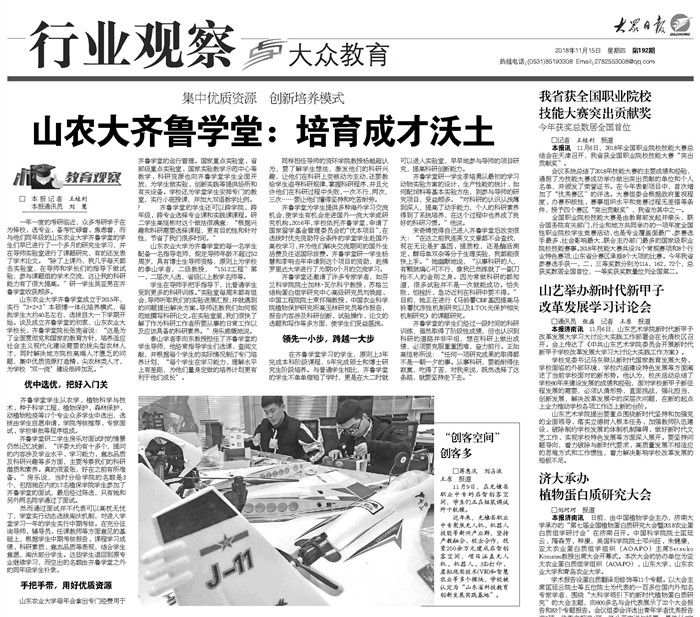 11月15日,大众日报在重要版面刊发题为《山农大齐鲁学堂:培育成才沃土》文章,详细介绍我校集中优质教学科研资源,打造拔尖型人才成长平台的典型经验。文章说,面对实施乡村振兴战略和推进“双一流”建设对精、尖农林人才的迫切需求,中文字幕有码无码人妻aV蜜桃_亚洲中文在线看视频一区_91精品国产综合久久香蕉蜜桃_欧美日韩最新一区二区三区_99久久精品无码一区二区久久__亚洲国产日韩制服在线观看_日韩AV片无码一区二区不卡电影_久久久久久夜精品精品免费啦创新人才培养模式,建立齐鲁学堂,通过“3+2+3”的本硕博一体化模式,让学生实现了“领先一小步,跨越一大步”的华丽转身。