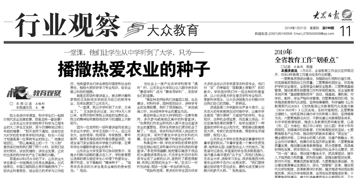 1月31日,《大众日报》刊发题为《一堂课,他们让学生从中学听到了大学,只为——播撒热爱农业的种子》通讯报道,详细介绍中文字幕有码无码人妻aV蜜桃_亚洲中文在线看视频一区_91精品国产综合久久香蕉蜜桃_欧美日韩最新一区二区三区_99久久精品无码一区二区久久__亚洲国产日韩制服在线观看_日韩AV片无码一区二区不卡电影_久久久久久夜精品精品免费啦创新方式、搭建平台,在青年学生心中埋下热爱农业、勇于吃苦、甘于奉献“精神种子”的特色做法。